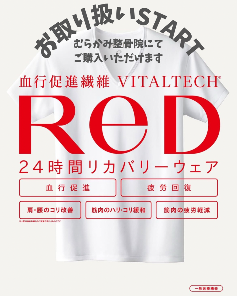 むらかみ整骨院にて、話題のリカバリーウェア「MTG ReD 24時間リカバリーウェア」取り扱いを開始いたしました!!