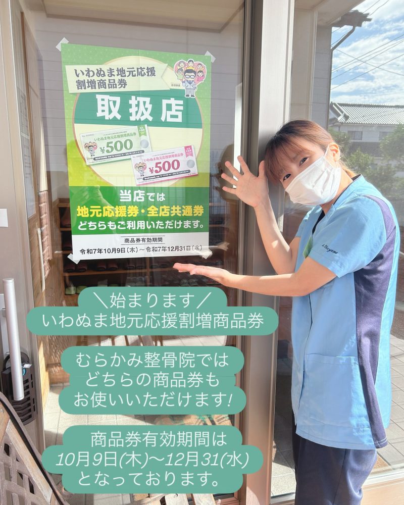 むらかみ整骨院は『 いわねま市地元応援割増商品券 』取り扱い店舗です!